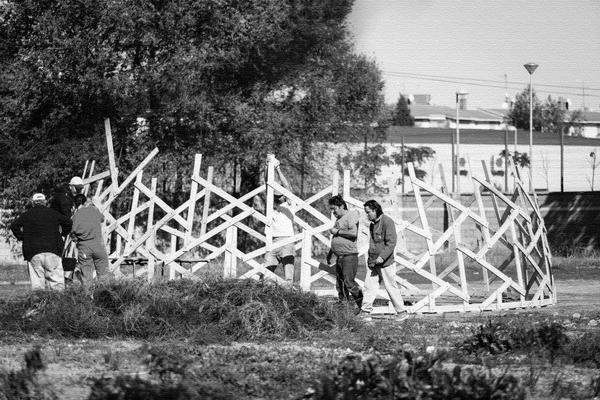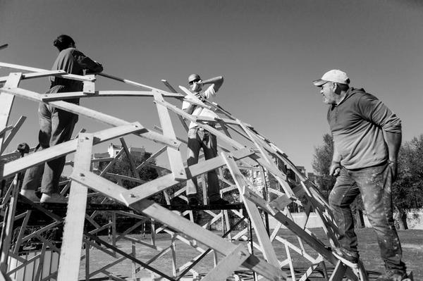 A partir de las experiencias acumuladas en el taller infantil de geometrías geodésicas se empezó a planificar el montaje de una segunda estructura, esta vez en madera.